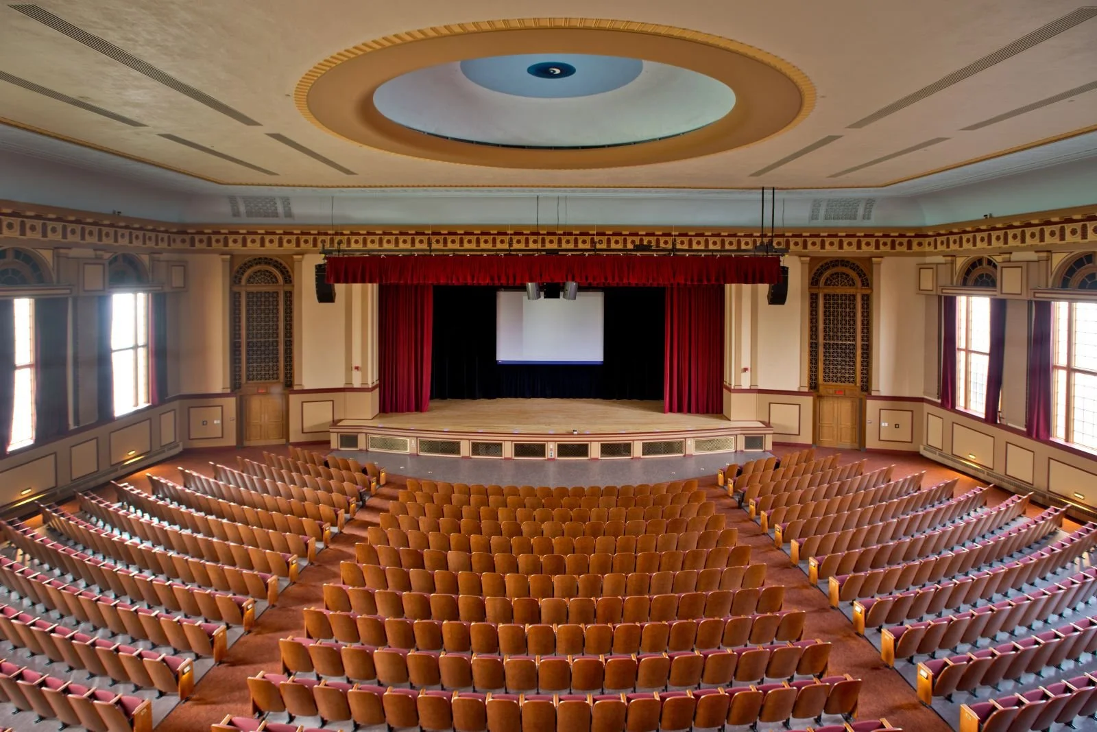 After a major renovation Schaeffer Auditorium re-opened in Sept. 2013 as a grand performing arts center. With a seating capacity of approximately 826, the hall is used daily for university gatherings, presentations as well as for KU Presents! performances. The building also houses the offices for KU Presents!, the main box office for the entire campus, a black box theatre, dressing rooms, a green room and production area. The new music wing includes music classrooms, 2 rehearsal halls, several practice booths, a music library and instrument storage.